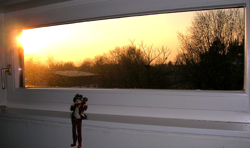 Diakonissenhaus Bethlehem, Karlsruhe -- Wintermännchen im Treppenhausfenster